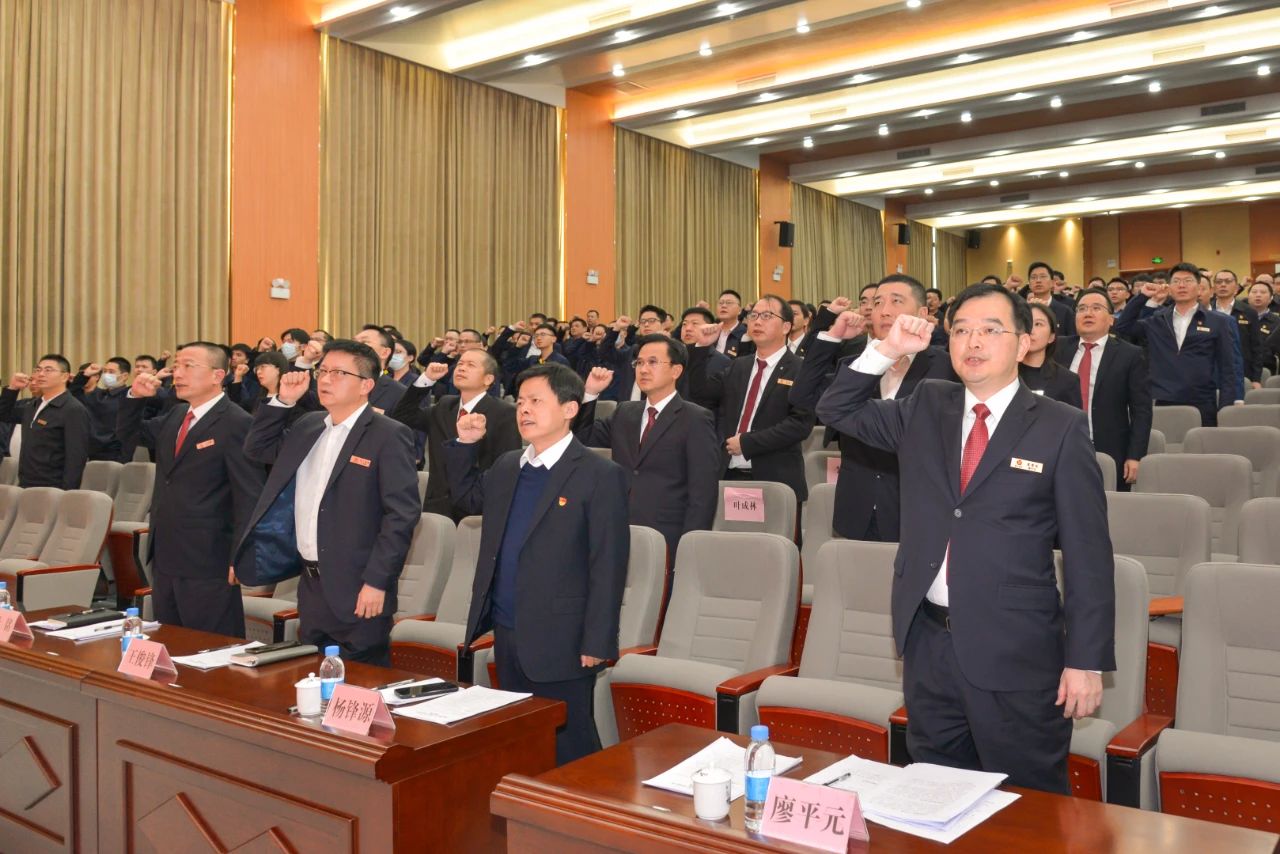 大會(huì)最后進(jìn)行了新年誓師,動(dòng)員全體員工在新的一年踔厲奮發(fā),站位新起點(diǎn),奮進(jìn)新征程!